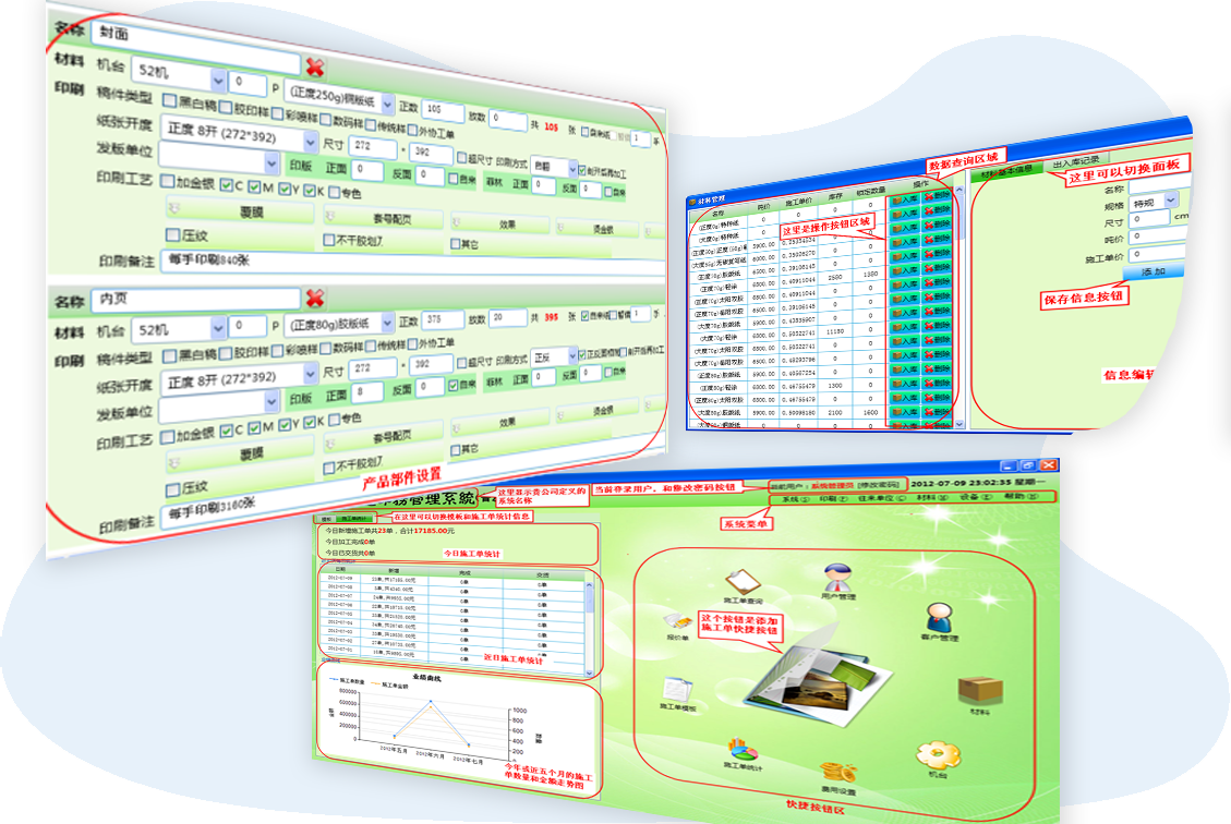 幫助印刷企業(yè)解決算價(jià)不準(zhǔn)、多個(gè)業(yè)務(wù)員算價(jià)不一致、印刷安排不智能的問題。靈活的算式公式編輯功能,支持階梯價(jià)、固定價(jià)、超尺寸價(jià)格等規(guī)則設(shè)置。包括材料管理、印刷單管理、機(jī)臺(tái)管理、客戶管理等功能。
